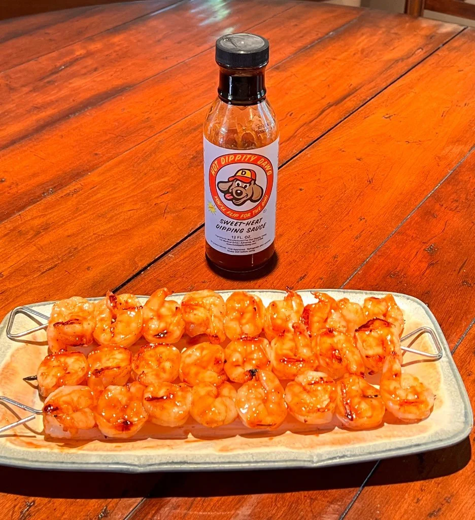 One of the BEST! This is a real Dippity favorite for those who like hot shrimp! It is so simple – go to your favorite seafood restaurant and order their version of flash fried shrimp or oysters with fries. When your food is served, drizzle Dippity’s “Sweet-Fire” generously over the shrimp or oysters as well as the fries. Be prepared to use your Hot Dippity Dawg “Sweet-Fire” travel squeeze bottle!